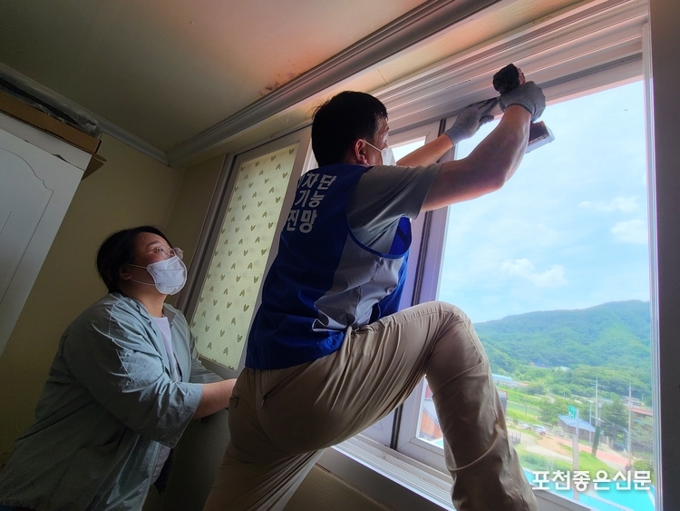 사)포천시자원봉사센터(이사장 박윤국)에서는 경기도시공사가 후원하고 경기도자원봉사센터가 공동으로 실시하는 '2021 G-Housing 리모델링' 사업의 일환으로 19일(토)과 20일(일) 양일에 걸쳐 포천시희망복지센터에서 추천한 이동면 소재의 한부모가정에서 옥상 방수공사 및 미세먼지 방충망 교체와 도배작업을 진행했다.