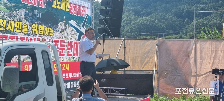 마지막으로 연제창 시의회 부의장은 미리 준비해 온 성명서를 낭독했고, 참석한 시민들은 '드론사령부 포천 주둔 반대' 구호를 외치며 2시간에 걸친 반대 집회를 마무리했다.