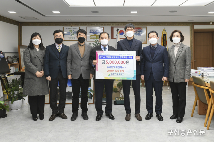 (재)포천시교육재단(이사장 박윤국)은 지난 13일 (사)대한한돈협회 포천지부(지부장 김창섭)와 ㈜한빛이엔에스(대표 유진현)로부터 지역 인재 육성을 위한 장학금 500만원을 각각 기탁받았다고 밝혔다.