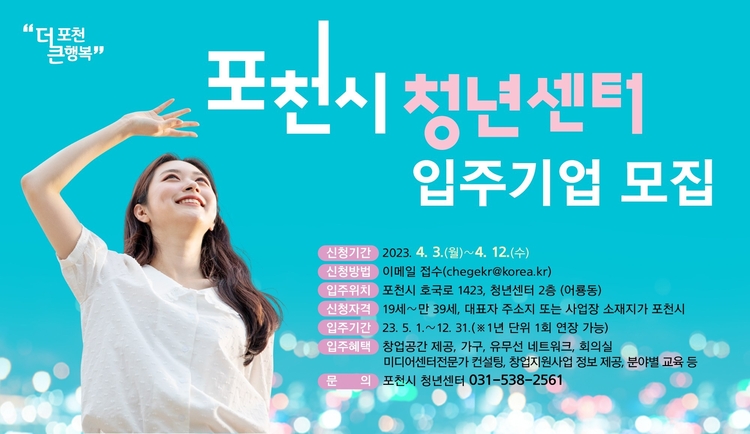 포천시 청년센터가 2023년 입주기업을 모집한다.