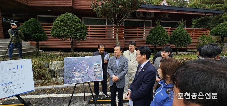 포천시의회는 지난 10월 23일에는 본회를 휴회하고 △ 천보산 자연휴양림 △ 선단IC 연결도로 확장공사 △ 포천터미널 공원화 조성사업 △ 산정호수 신규주차장 △ 억새꽃 축제 △ 산정호수 가족호텔 등 6군데 사업장을 방문하여 사업 추진 과정의 실태 확인 및 추가 개선 사항은 없는지 면밀히 점검했다. 포천좋은신문은 앞의 3개 사업장에 동행 취재했다.