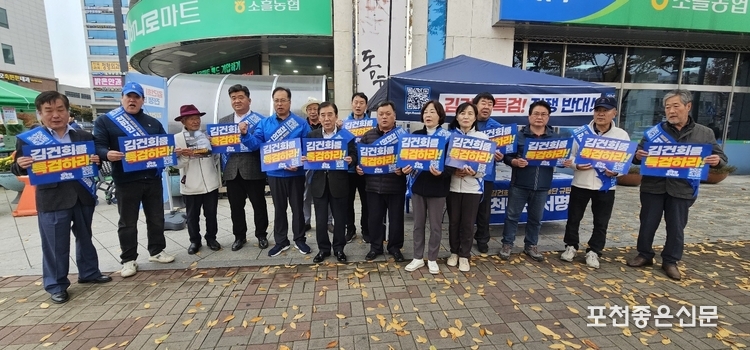 더불어민주당 포천·가평 지역위원회(위원장 박윤국, 이하 민주당)는 지난 11월 14일 오후, 소흘농협 하나로마트 앞에서 '김건희 국정농단 의혹 진상 규명을 위한 특검법(소위 김건희 특검법) 통과 촉구 범국민 서명운동'을 펼쳤다.
