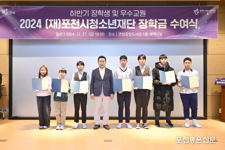 (재)포천시청소년재단(이사장 백영현)은 지난 12월 27일 하반기 장학생 및 우수교원 장학금 수여식을 개최했다.