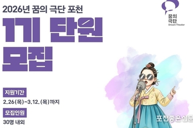 포천문화관광재단(대표이사 이중효)은 지역 아동·청소년을 위한 문화예술교육 프로그램 ‘2026 꿈의 극단 포천’의 1기 신규 단원을 오는 3월 12일까지 모집한다. ‘꿈의 극단’은 문화체육관광부가 주최하고 한국문화예술교육진흥원과 포천문화관광재단이 주관하며 포천시가 후원하는 사업으로, 아동·청소년이 예술 활동을 통해 자존감을 키우고 공동체 의식을 함양할 수 있도록 지원하는 문화예술교육 프로그램이다. 이번 ‘2026 꿈의 극단 포천’은 일반적인 연극 교육을 넘어 한국 고유의 전통 소리와 춤, 악기가 어우러지는 ‘국극(전통 뮤지컬)’을 특화 교육 과정으로 운영한다. 이를 통해 지역 아동·청소년들이 전통 예술을 놀이처럼 친숙하게 접하고, 우리 문화에 대한 이해와 창의적 표현 능력을 함께 키울 수 있도록 지원할 계획이다. 모집 대상은 초등학교 3학년부터 중학교 2학년까지이며, 해당 연령에 포함되지 않는 초등학교 1·2학년 아동도 ‘예비 단원’으로 신청할 수 있다. 모집 인원은 총 30명이다. 최종 선발된 단원에게는 오는 4월부터 11월까지 포천38문화예술창작소에서 매주 월요일 오후 4시부터 7시까지 진행되는 정규 교육(총 35회)을 비롯해 여름 캠프와 정기 공연 참여 기회 등이 전액 무료로 제공된다. 포천문화관광재단 이중효 대표이사는 “꿈의 극단 포천은 기능 중심의 엘리트 교육이 아니라 아이들이 예술 속에서 자유롭게 표현하고 서로 소통하며 성장하는 문화예술 교육 프로그램”이라며 “포천의 미래 세대가 예술적 재능을 발견하고 꿈을 키워갈 수 있는 기회가 될 수 있도록 학부모와 시민들의 많은 관심과 참여를 바란다”고 말했다. 참여 신청은 3월 12일 오후 6시까지 온라인 간편 접수(https://buly.kr/3CPbbZu)를 통해 가능하며, 자세한 사항은 포천문화관광재단 누리집 공고를 참고하거나 문화사업팀(☎031-535-5939)으로 문의하면 된다. [ 포천좋은신문 문석완 기자 ]
