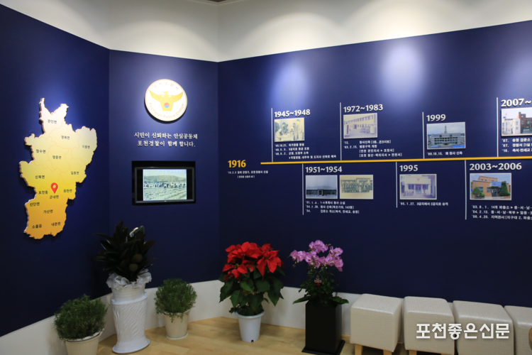 포천경찰서는 이에 더해 내부 행사 및 외부인사, 민원인들이 방문하여 사진 촬영 시 배경으로 사용할 수 있는 포토존(비둘기낭 폭포 및 청사 야경)을 설치해 내·외부 만족도 향상에 힘썼다.