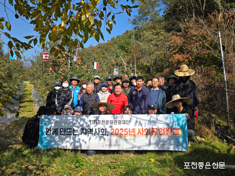 포천문화관광재단(대표이사 이중효)은 지난 11월 5일 영중면 과수농가에서 가을 수확철을 맞아 일손 부족으로 어려움을 겪는 농가를 돕기 위한 사회공헌활동 ‘포밍데이(Forming Day)’를 실시했다.