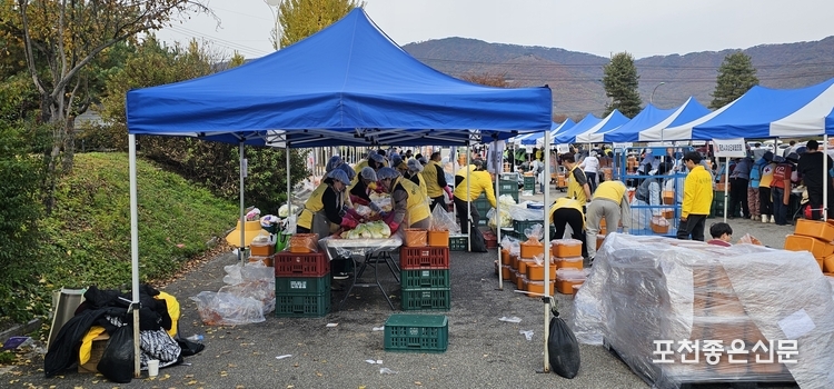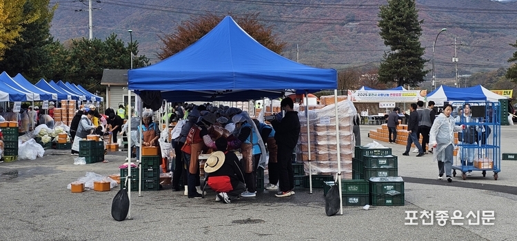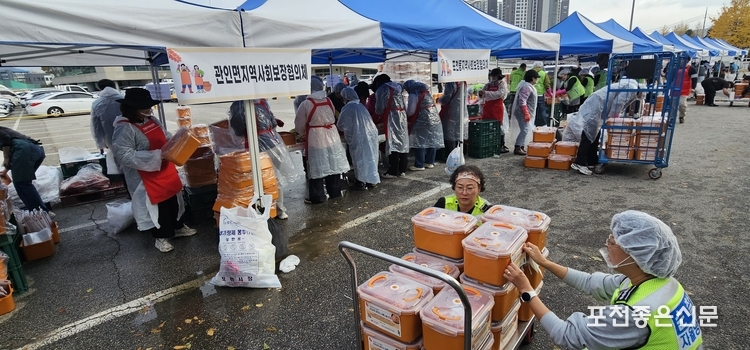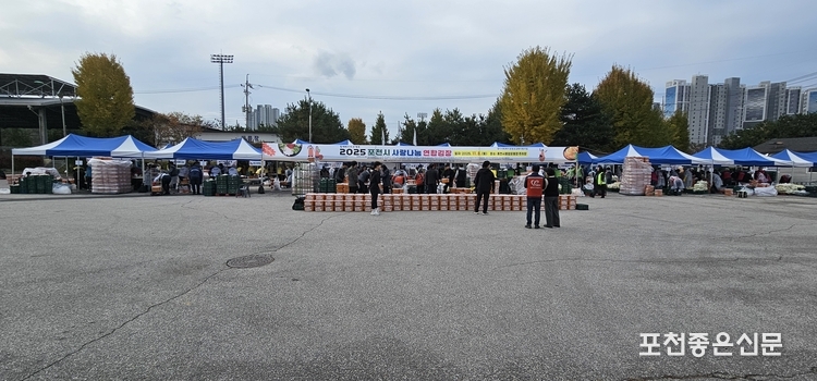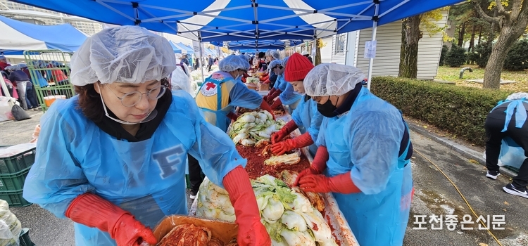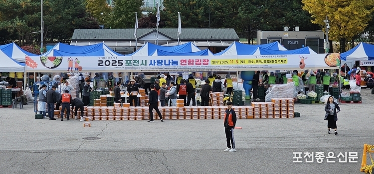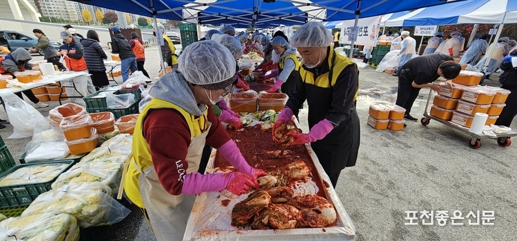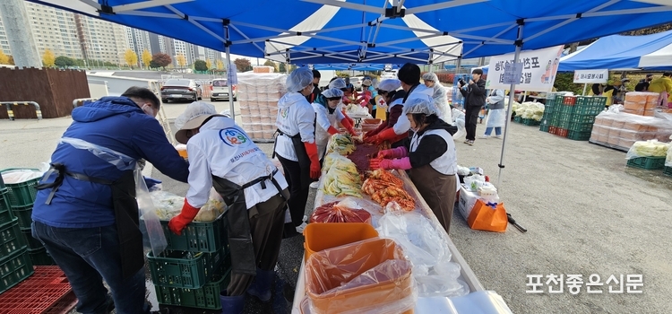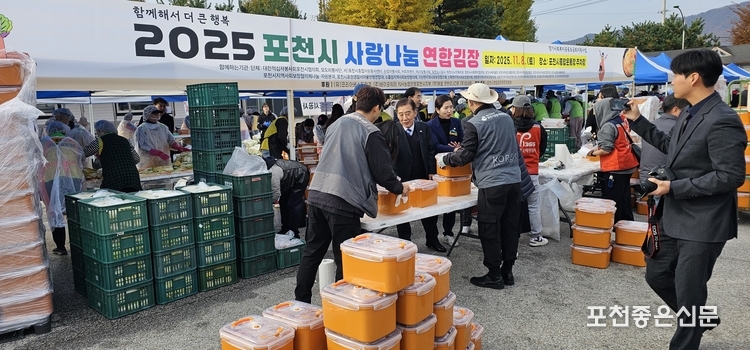 포천시연합김장추진위원회는 지난 11월 8일 포천종합운동장 주차장 일원에서 기관·단체 및 자원봉사자 300여 명이 함께한 가운데 ‘2025년 포천시 사랑나눔 연합김장 행사’를 개최했다.