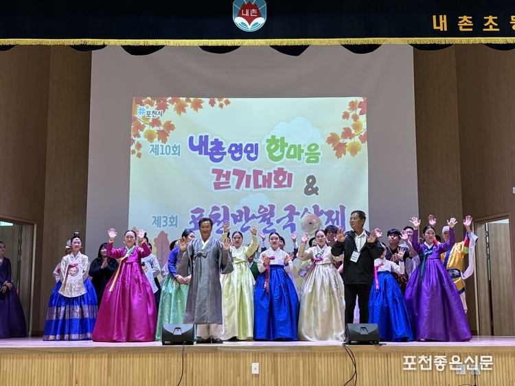 포천시 내촌면에서는 지난 25일 내촌초등학교 운동장과 체육관에서 주민 700여 명이 참석한 가운데 ‘제10회 내촌면민 한마음 걷기대회’ 및 ‘제3회 포천반월국악제’를 성황리에 개최했다.