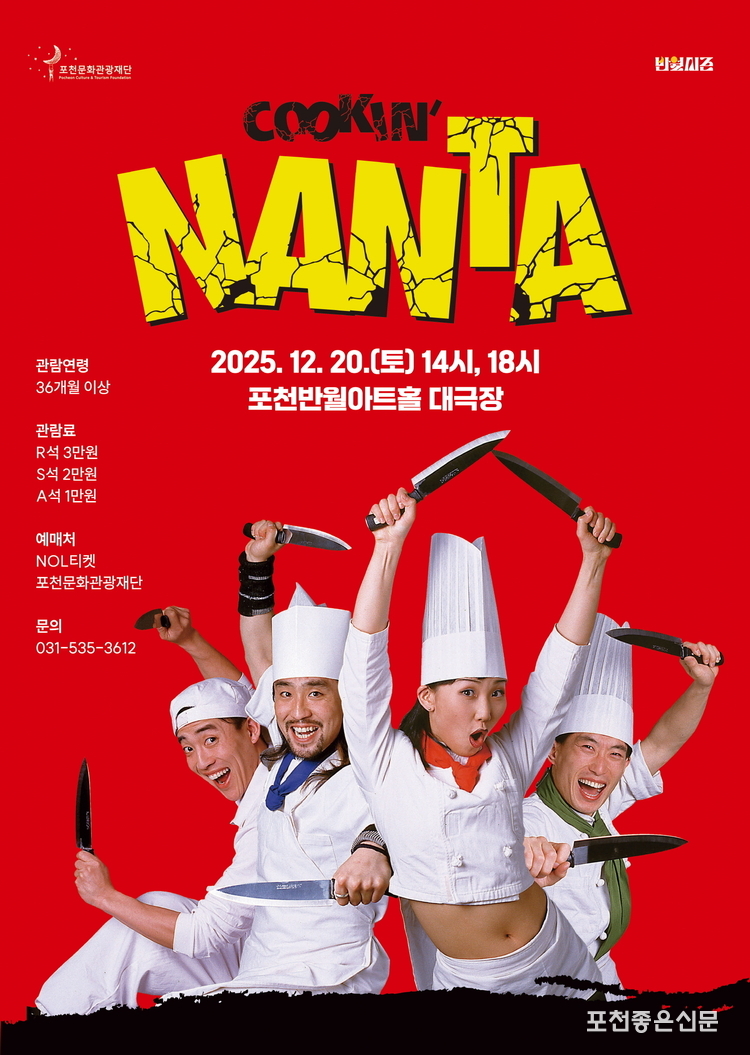 포천문화관광재단(대표이사 이중효)은 오는 12월 20일 포천반월아트홀 대극장에서 대한민국 대표 비언어 퍼포먼스 ‘난타(NANTA)’ 공연을 개최한다.