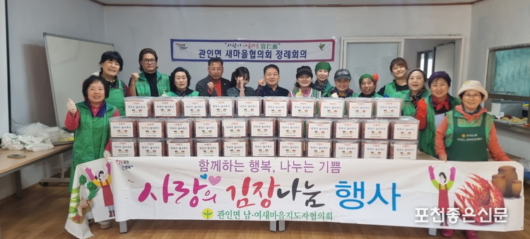 신영철 관인면장은 “정성으로 김치 나눔을 준비해 주신 새마을부녀회 회원들께 깊이 감사드린다. 이웃을 생각하는 따뜻한 마음들이 모여 더욱 살기 좋은 지역공동체가 만들어지고 있다”고 밝혔다.