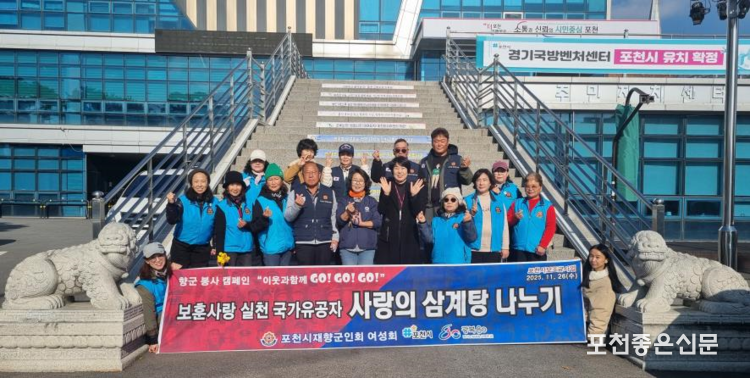 포천시재향군인회 여성회(회장 김소정)는 26일 가산면에서 여성회원 전원이 참여한 가운데 국가유공자 어르신들을 위한 ‘이웃과 함께 GO! GO! GO!’ 삼계탕 나누기 봉사활동을 진행했다.