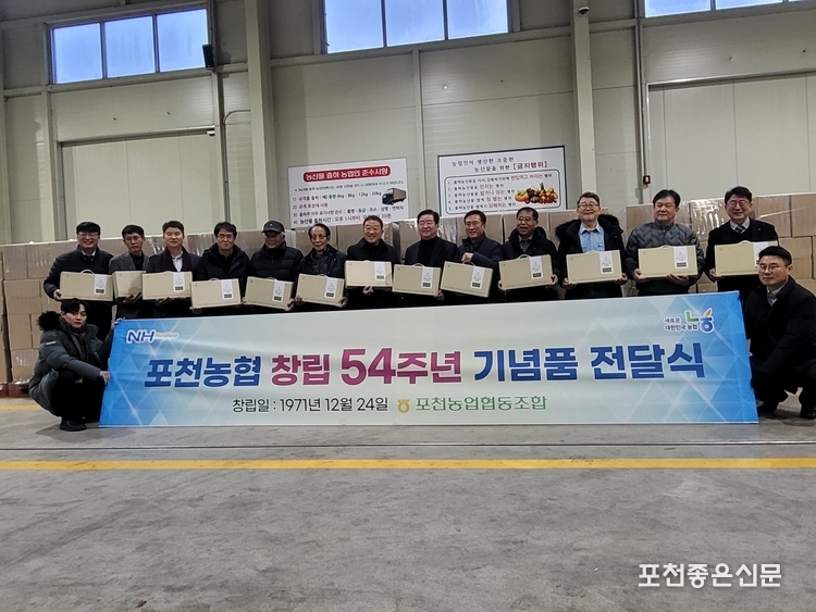 포천농협(조합장 김광열)은 19일 포천농협 창립 54주년을 맞아 기념식을 갖고 조합원과 명예 조합원 전원에게 기념품 전달했다. 포천농협은 창립일은 1971년 12월 24일이다.,