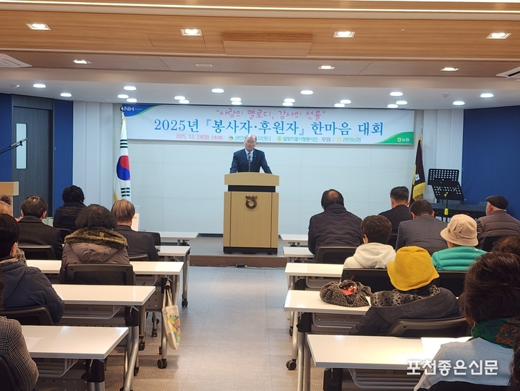 이날 열린 대회는 2025년도 한 해 동안 어르신들을 위해 따뜻한 동행을 한 봉사원과 후원자를 한자리에 모시고 그간의 성과를 공유하는 자리로 마련됐다. 진행은 활동 영상 시청, 표창과 축사, 음악 공연과 경품 추첨 순서로 이어졌다.