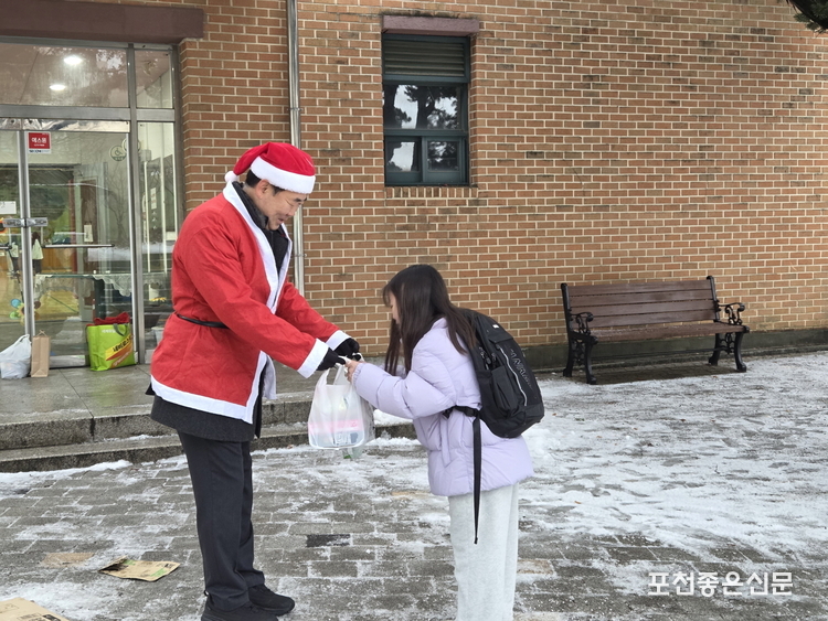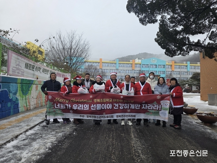 영북면 청소년지도협의회와 영북면 주민자치회는 12월 24일 크리스마스 이브를 맞아 영북초등학교 앞에서 지역 어린이들을 위한 크리스마스 선물 나눔 행사를 개최했다.