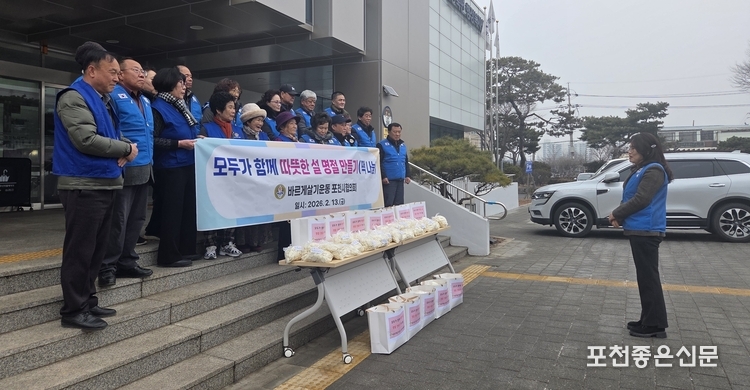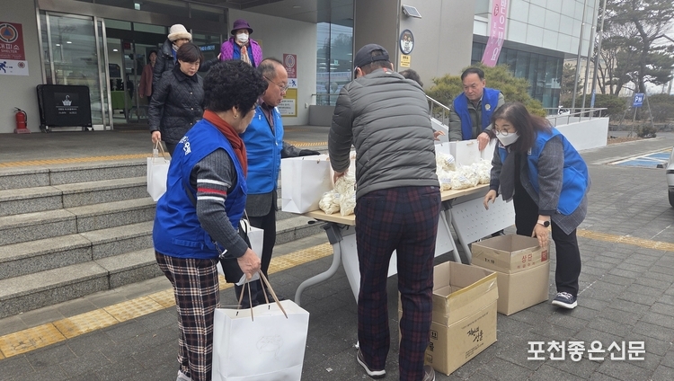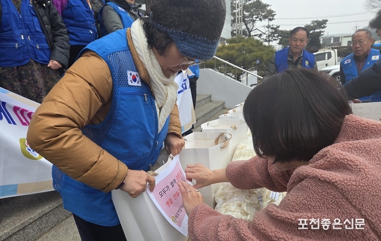 바르게살기운동 포천시협의회(회장 정미옥)는 지난 13일 신북면행정복지센터와 버스 정류장에서 설 명절을 맞아 ‘모두가 함께 따뜻한 설 명절 만들기 떡 나눔’ 활동을 했다.