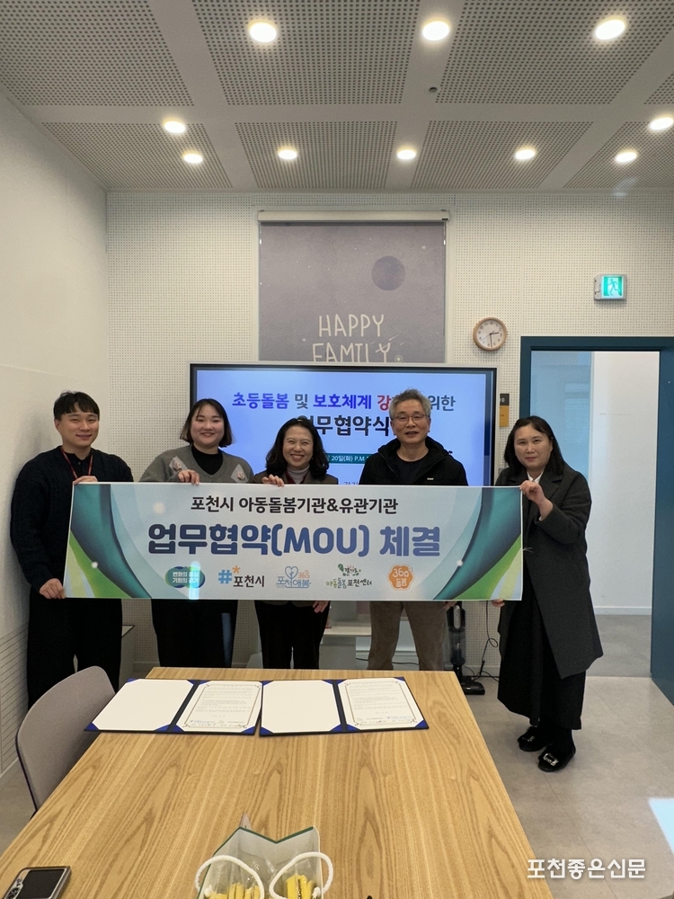 지난 1월 20일에는 경기포천아동보호전문기관(관장 최철호)과 아동 보호 체계 강화를 위한 업무협약(MOU)을 체결했다. 아동과 가장 가까운 생활 현장에 위치한 돌봄기관과 아동학대 사례를 전문적으로 다루는 아동 아동학대 예방과 조기 발견, 위기 아동에 대한 신속하고 체계적인 지원을 목표로 양 기관이 상호 협력하기 위해 마련됐다.