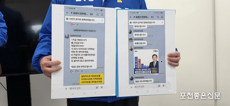 당의 조직이 특정 후보의 정치적 기반으로 악용된다면, 그 경선 결과는 민주적 정당성을 결코 인정받을 수 없습니다. 만약 중앙당과 경기도당이 이러한 문제를 바로잡지 못한 채 불공정 논란 속에서 공천이 강행된다면, 우리는 이를 당내 민주주의에 대한 중대한 파괴 행위로 규정할 것입니다. 그 경우 우리는 포천의 공정한 정치 질서를 반드시 지켜내기 위해, 해당 후보에게 모든 수단을 동원하여 정치적 책임을 추궁할 것임을 분명히 선언합니다.