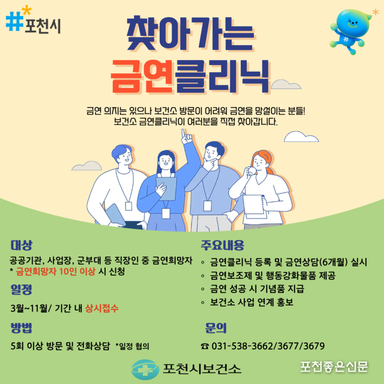 자세한 사항은 보건소 금연클리닉(☎031-538-3662, 3677, 3679)으로 문의하면 된다.