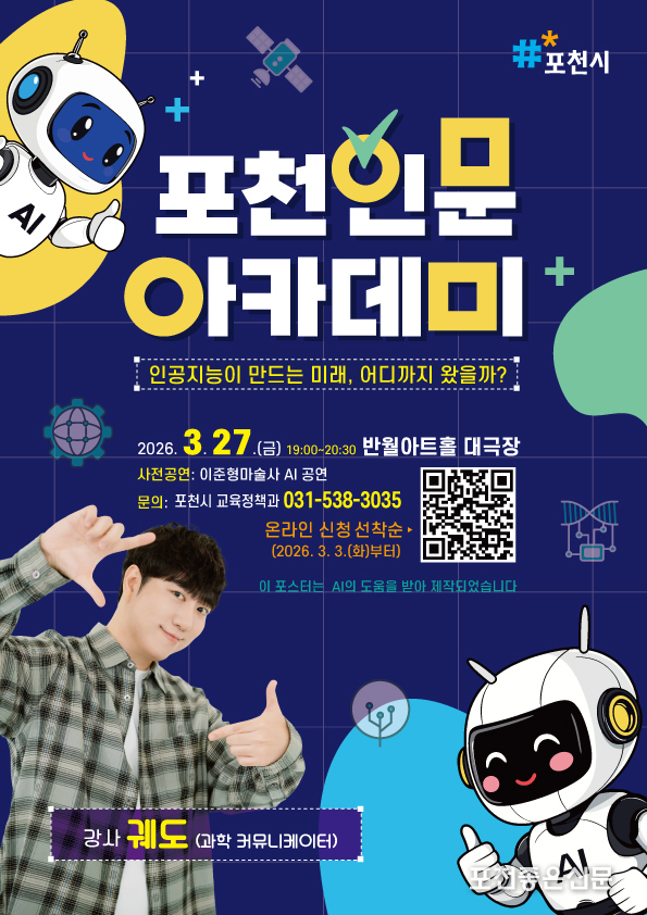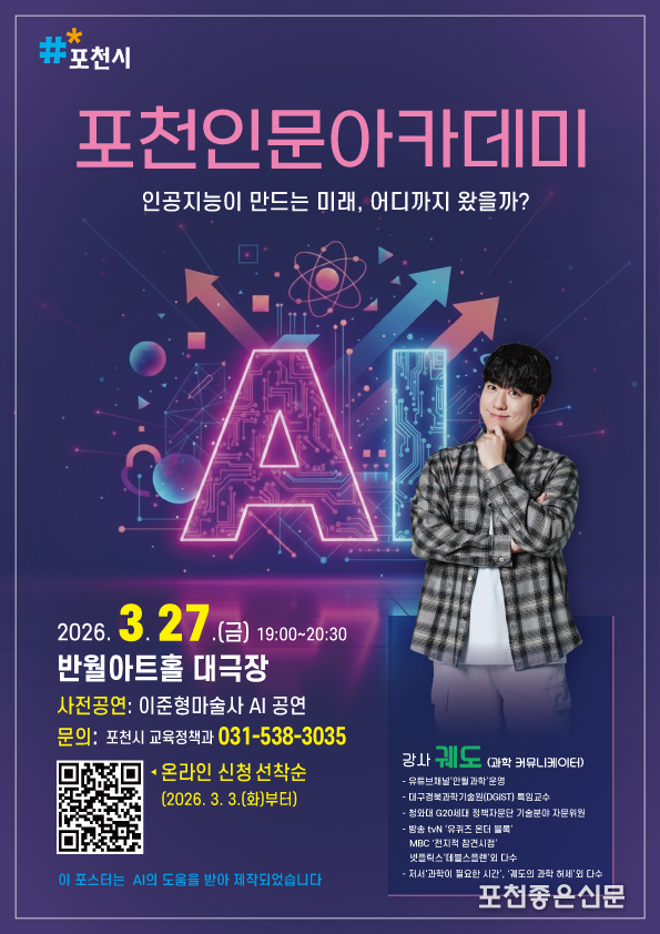 포천시는 오는 3월 27일 오후 7시, 포천반월아트홀 대극장에서 ‘2026년 3월 포천 인문 아카데미’를 개최한다.
