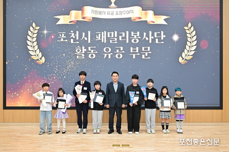 이번 수여식은 포천시종합자원봉사센터가 운영하는 청소년봉사단과 패밀리봉사단에 지속적으로 참여하며 환경정화활동, 취약계층 지원, 지역행사 참여 등 다양한 분야에서 이웃사랑을 실천해 온 어린이·청소년들을 격려하고, 지역 내 자원봉사 참여 분위기를 확산하기 위해 마련됐다.