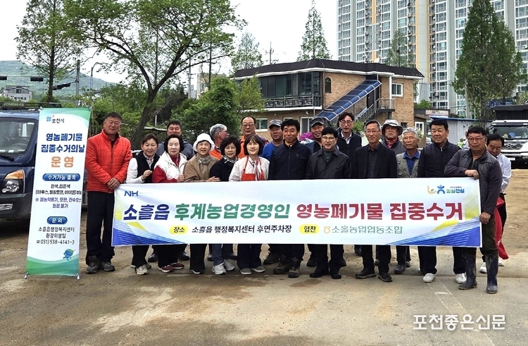 이번 수거에는 소흘읍 남여 농업경영인회, 마을 이장, 소흘농협 등이 참여했다. 참여자들은 소흘읍 관내 농지에 방치된 각종 영농폐기물을 수거하며 환경 정화에 힘을 보탰다.