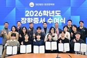 재단법인 포천장학회 (이사장 박치범)는 21일 포천시청 시정회의실에서 2026년도 장학증서 수여식을 개최했다. 재단법인 포천장학회는 1975년 설립 후 현재까지 활동을 이어오고 있는 장학 단체다. 이날 장학증서 수여식에는 백영현 포천시장을 비롯한 재단법인 포천장학회 박치범 이사장과 이기복 감사, 심윤용 이사, 오정호 이사, 이창욱 이사와 장학생으로 선정된 학생 및 학부모 20여 명이 참석했다. 오순임 (전)포천시자원봉사센터 사무국장의 사회로 진행된 장학증서 수여식은 포천 관내 6개 고등학교에서 추천된 2026학년도 대학 입학예정자 6명에게 각각 200만 원씩 총 1200만 원의 장학금이 전달됐다. 이날 장학증서를 받은 학생은 포천일고 3년 최태호 군(서울과학기술대 지능반도체공학과 진학), 포천고 3년 최예원 양(고려대 자유전공학부 진학), 동남고 3년 김수연 양(고려대 보건정책관리학부 진학), 관인고 3년 장수진 양(을지대학교 간호학과 진학), 일동고 3년 정종혁 군(건국대 건축학부 진학), 송우고 3년 유현동 군(서강대 사이언스기반 자유전공학부 진학)이다. 포천장학회 장학증서 수여식에 참석한 백영현 포천시장은 축사를 통해 “포천시는 꿈을 향해 도전하는 청소