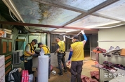 서울광염교회 토요봉사대(단장 조현삼)는 지난 27일 화현면에 있는 저소득 가정 한 곳을 선정해 주거환경개선사업을 진행했다. 서울광염교회 토요봉사대는 오랫동안 포천과 좋은 인연을 맺어온 봉사 단체다. 이번에 주거환경개선사업을 하게 된 집은 명덕2리 한동규 이장의 추천으로 알게 된 김 모 어르신 집이었다. 토요봉사대장은 집수리 전 이 집을 직접 현장 답사했다. 김 모 어르신은 따님과 사회복무요원인 손자와 함께 살고 있는데, 공공근로사업과 기초노령연금 소득으로 어렵게 생활하며 집수리는 생각하지도 못할 만큼 어려운 형편이었다. 낡은 농가주택은 집안 곳곳이 문제였다. 특히 전기선 문제는 심각했다. 오래된 전기선 하나에 스위치와 전등 여러 개 전열기가 문어발처럼 꽂혀 있어 금방이라도 불이 나도 이상하지 않을 정도로 복잡했다. 거실 천장은 곧 내려앉을 것만 같았고, 주방에는 단열이 되지 않은 얇은 창이 아슬아슬하게 걸려 있었다. 토요봉사대는 사전 현장 답사를 통해 준비해 온 전기 재료, 내려앉은 거실 천장 재료, 도배와 장판을 할 준비를 갖추고 김 모 어르신 집을 방문했다. 또 주방 창문 교체에 필요한 재료도 구입해 함께 싣고 왔다. 그런데 천장 공사는 슬레이트가 지붕에
