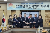 포천시의회는 지난 1월 2일 의회 2층 의원회의실에서 2026년 병오년(丙午年) 새해를 맞는 시무식을 개최하고 본격적인 의정활동에 돌입했다. 이날 시무식에는 임종훈 의장을 비롯한 시의원들과 의회사무과 직원, 백영현 포천시장, 김종훈 부시장 및 집행부 관계자 등 40여 명이 참석해 새해 인사와 덕담을 나누며 포천시 발전의 의지를 다졌다. 임종훈 의장은 “정치를 시작할 때의 그 마음으로 남은 임기 동안 더욱 겸손하고 성실하게 시민을 위해 봉사하겠다”라고 밝혔다. 또한 포천시의 비약을 위해 의회와 집행부 간의 긴밀한 협력과 상호 존엄을 당부했다. 백영현 포천시장은 2025년 한 해 동안 교육, 관광, 기업 지원 등 다양한 분야에서 거둔 성과를 공유하며 의회의 적극적인 협조에 감사를 표했다. 백영현 시장은 “2026년은 그간 구축해 온 ‘인문도시’의 틀 위에서 시민이 사람답게 살며 건강을 찾는 ‘건강도시’를 실현하는 원년이 될 것”이라고 선포하며, 시정 운영에 행정력을 집중할 것임을 시사했다. [ 포천좋은신문 문석완 기자 ]