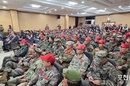 해병대 포천시 전우회(취임회장 박종엽) 회장 취임식이 지난 3월 29일 군내면에 위치한 여성회관 3층 청성홀에서 개최되었다. 취임식에는 백영현 포천시장, 임종훈 포천시의회 의장, 김용태 국회의원, 김성남·윤충식 경기도의원, 연제창 포천시의회 부의장, 서과석·임종훈·안애경·조진숙 포천시의회 의원 등 정치인들과 이중효 포천문화관광재단 대표, 포천교육지원청 유기열 교육과장, 양윤호 새마을지도자 중앙회장, 이부성 포천시새마을회 회장, 양기원 축협 조합장, 김효진 포천도시공사 사장 등의 기관장들, 박 취임회장의 친지들, 이종세 해병대 전우회 경기도 연합회장 및 이웃 시도 회장 및 임원 등 200여 명이 참석하였다. 취임식 식전 행사로 나선 해병 전우의 악기 연주에 맞춰 축하객이 한 두명씩 착석할 때에 행사장 밖에서는 이번 지방 선거에 나서는 주요 양당 후보자들이 입장객들과 인사하며 자신을 알리기 위해 노력하는 모습도 보였다. 취임식은 신용수 전우의 사회로 임석 상관에 대한 경례, 국민의례, 내빈소개, 각 지회장 소개, 임명장 수여식, 선배 전우에게 꽃다발 증정, 전우회기 전달, 취임사, 축사 등의 순으로 진행되었다. 박종엽 취임 회장은 참석 내빈과 동료, 선배 회장단의 노고에 감사를 표한 후, 취임사를 시작했다. 박 회장은 "한 번 해병은 영원한 해병이라는 고귀한 신념은 전역 이후에도 우리 삶의 나침판이 되어 살아 숨 쉬고 있다. 해병 전우회는 친목을 도모하는 단체를 넘어, 끈끈한 전우애를 바탕으로 서로를 지탱하고 지역사회의 어두운 곳을 밝히며 해병대의 명예를 계승하는 자랑스러운 공동체이다"면서 "첫째, 화합과 단결로 하나 되는 전우회를 만들겠다. 둘째, 행동으로 실천하는 봉사하는 해병 전우회가 되겠다. 셋째, 미래를 준비하는 역동적인 전우회를 구축하겠다"고 약속했다. 백영현 포천시장은 "박종협 회장이 해병대 전우회장의 자격이 있다는 것을 현장에서 느낀 일화가 있다. 지난해 여름 내촌면에 큰물이 났을때, 새벽부터 서정아 면장을 태우고 수해 지역 곳곳을 살피는 모습을 보았다"며 축사를 시작했다. "재난 재해 현장에는 우리 해병 전우회 여러분들이 항상 계셨다. 그래서 포천시에서도 해병 전우회의 봉사를 원활히 하기 위한 구조 장비와 차량 지원 등에 최선을 다하겠다"며 축사했다. 끝으로 백시장은 "포천시의회 의원 7명 가운데, 해병 전우가 3명이나 있다는 것은 해병 들의 봉사 정신이 시민들과 함께한다는 증거이다'라며 축사했다. 김용태 국회의원은 축사를 하기 전, 채 해병 사건에 있어서 당시 집권 여당의 일원으로 올바르게 해결되도록 하지 못한데 대한 사과를 하였다. 김 의원은 '해병대가 그간 국가와 지역 사회에 행한 봉사에 대해 제대로 평가되지 않은 부분이 많이 있다. 국회에서 제4군 체제로 바꾸기 위한 여러 움직임이 있으며, 이를 원활히 되도록 최선을 다하겠다"며 취임회장과 해병전우회에 축하했다. 사회자의 짓꿎은 호명으로 배우자인 서정아 내촌면장이 앞으로 나오게 되자 좌중에 폭소가 터졌다. 서 면장은 "내조를 열심히 하겠다는 다짐"을 해서 참석자들의 박수와 환호를 받았다. 한편, 이날 축하 화환은 불우이웃을 돕기 위한 쌀 또는 쌀 화환으로 받았는데, 전우회는 이를 내촌면 나눔릴레이와 포천동에 기부해 박 회장의 취임을 어려운 이웃들과 함께 축하했다. [ 포천좋은신문 문석완 기자 ]