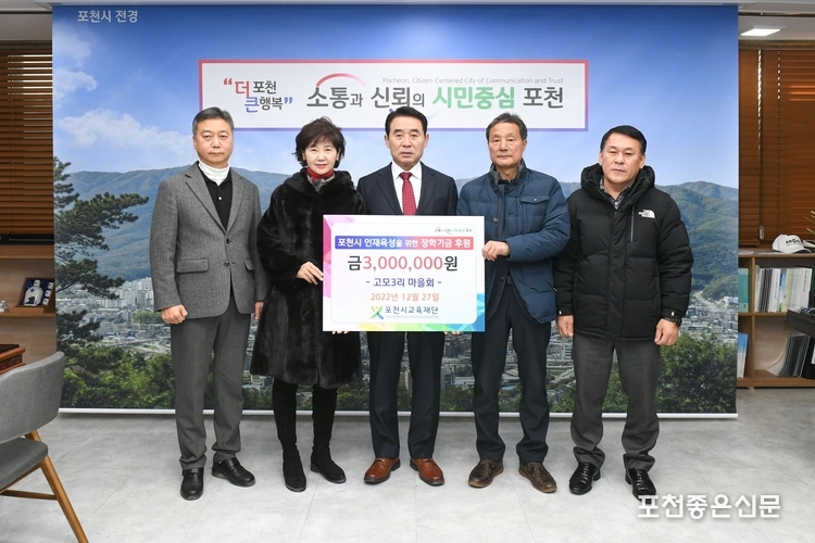 (재)포천시교육재단(이사장 백영현)은 지난 27일 고모3리 마을회에서 3백만 원을, NH농협포천시지부에서 1억 원의 장학금을 기탁했다고 밝혔다.
