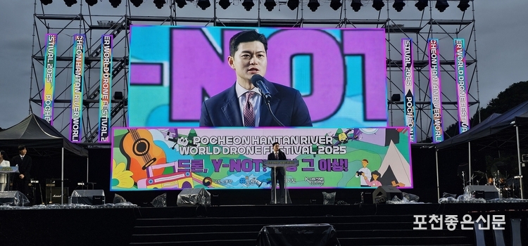 백영현 시장은 "한국의 그랜드캐니언인 포천 한탄강에서 개최되는 '포천 한탄강 세계드론제전'을 찾아와주신 손님들 환영한다. 대회의 부제인 'Y not?'은 드론 기술, 사람, 자연을 잇는 Y자형 다리를 의미한다. 앞으로 보여드릴 6천대 드론의 군집쇼는 가을밤 여러분께 귀중한 추억을 선물할 것이다. 드론의 반짝이는 불빛처럼 반짝이는 하루가 되기를 바란다"고 대회사를 했다.