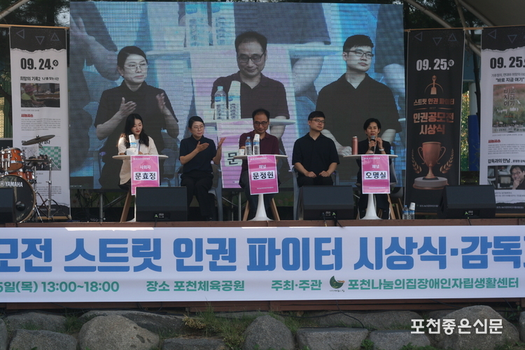 지난 9월 20일부터 24일까지 포천나눔의집 장애인자립센터가 주최한 제6회 포천 인권문화제가 개최되었다. 장애인 인권침해와 탈시설을 위한 토론회, 퀴어 토론회, 흥미와 재미가 어우러진 댄스 대회, 인권 공모전 시상식, 인간 vs AI 토론 등 다양한 주제로 구성된 축제가 진행되었다. 나는 기후 위기 영화 '바로 지금 여기' 상영 후 감독과의 대화 시간에 기후 활동가로 초대되어 함께 이야기를 나누었다.