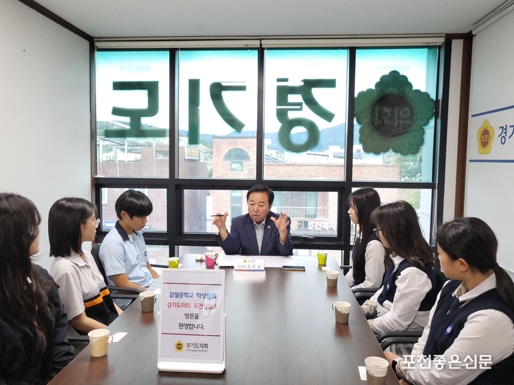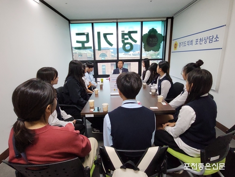 이날 갈월중학교 신문부 학생들은 포천상담소를 방문하여 김성남 의원에게 직접 질문을 던지며 활발한 대화를 나눴다.