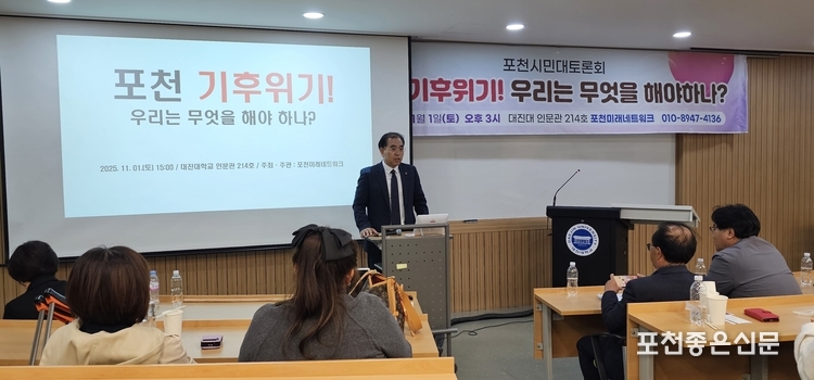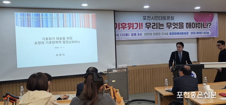포천미래네트워크(공동대표일꾼 김남영·김미현·김가현, 이하 포미네)는 지난 11월 1일 대진대학교 인문관에서 '포천의 기후위기 현안과 대응 방안'이라는 제목으로 세번째 토론회(이하 토론회)를 개최했다.