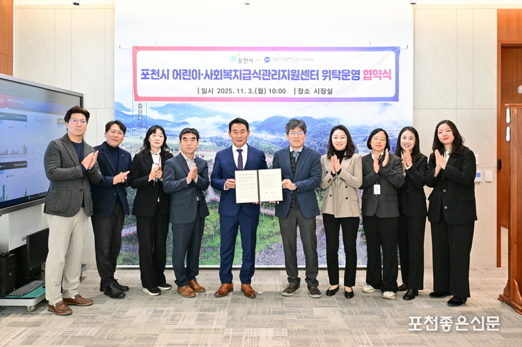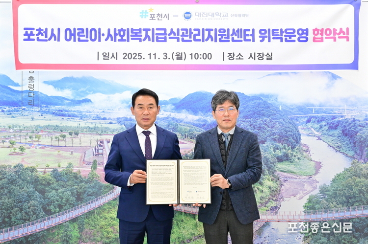 포천시는 지난 11월 3일 대진대학교 산학협력단과 ‘포천시 어린이·사회복지급식관리지원센터 위탁운영 협약식’을 개최했다.