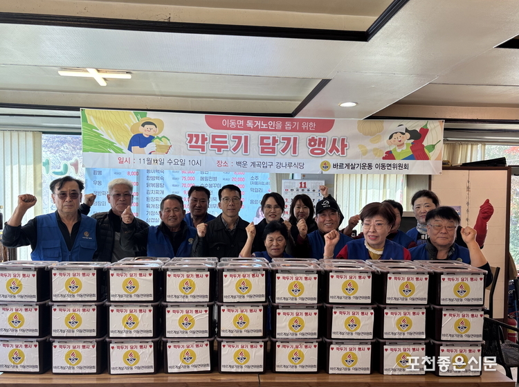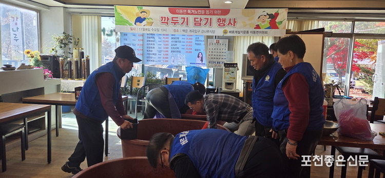 바르게살기운동 이동면위원회(위원장 서도석)는 지난 11월 12일 이동면 관내 독거어르신들의 따뜻한 겨울나기를 돕기 위해 ‘깍두기 담기 나눔 행사’를 진행했다.