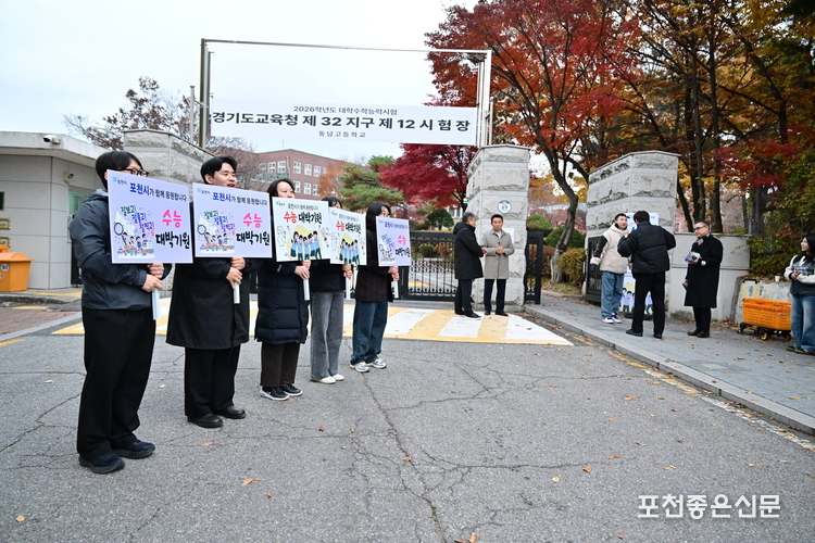 포천시는 수험생들의 안전한 이동과 편의를 위해 수능일 특별 교통대책을 마련해 ‘수험생 전용 포춘버스’를 운영하고, 시험장 주변에 교통 정리 인력을 배치하는 등 수험생 지원에 총력을 기울였다.