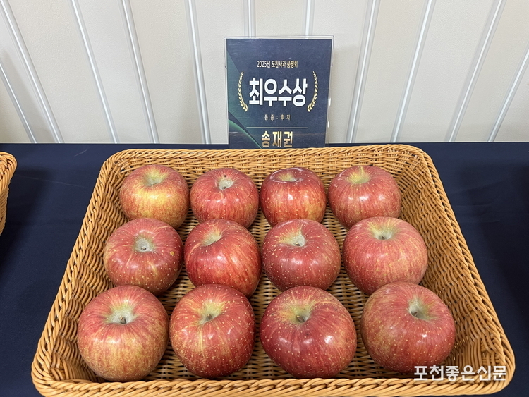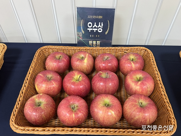 ‘2025년 포천사과 품평회’는 포천사과영농조합법인이 주관하고 포천시농업재단이 주최하여 진행됐으며, 심사는 당도와 과중, 경도, 모양, 균일도, 착색 정도, 맛 등을 종합적으로 평가했다.