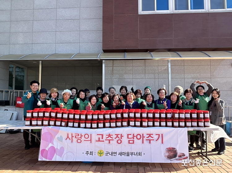 군내면 새마을부녀회(회장 한태선)는 지난 11월 14일 군내면행정복지센터 주차장에서 ‘사랑의 고추장 담그기’ 행사를 진행했다.