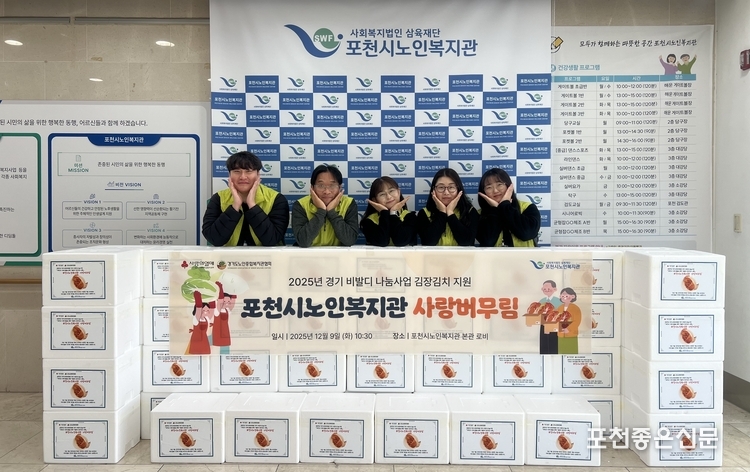 포천시노인복지관(관장 박근환)은 지난 12월 9일 경기노인종합복지관협회가 주관하는 경기사랑의열매 ‘2025년 경기 비발디 나눔사업’에 선정되어 겨울철 김장김치 지원사업 “사랑버무림” 전달식을 진행했다.