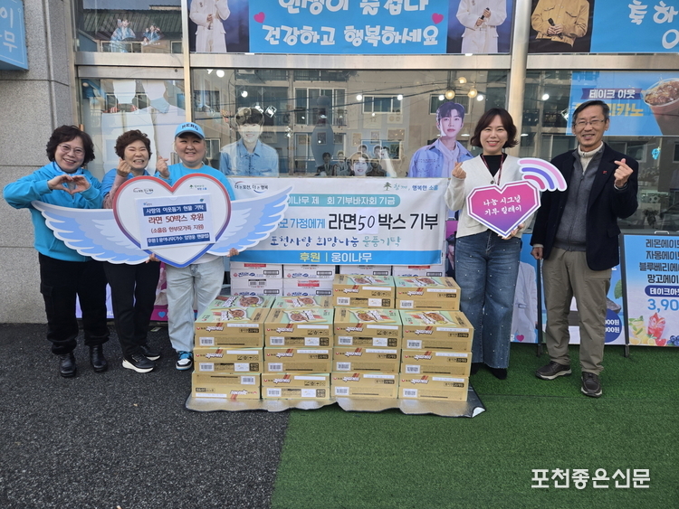 소흘읍 행정복지센터는 지난 12월 17일 ‘카페 웅이나무’가 한부모가정을 돕기 위해 라면 50박스를 기탁했다고 밝혔다.