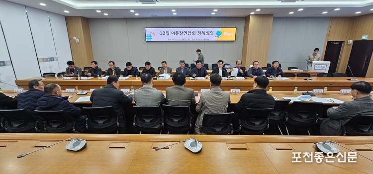 포천시이·통장연합회(전임회장 유해원, 신임회장 이강인)는 12월 23일 신청사 2층 시정회의실에서 12월 정기 월례회를 개최하여 시에 대한 건의사항 처리 결과 및 홍보사항 청취,, 신임 회장단 선출 등 안건을 처리하였다.