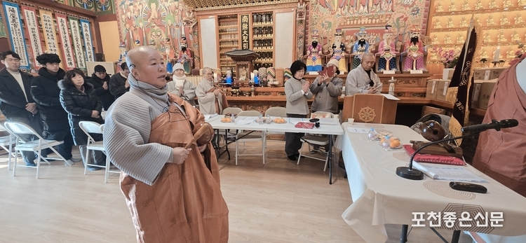 천궁사 주지 진영산 스님이 27일 내촌면 천궁사 대법당에서 개최한 대한불교자비승가연합회 을사년 정기총회에서 이날 참석한 50여 명 회원의 만장일치 추대로 제2대 회장에 연임했다. 이로써 진영산 스님은 제1대 회장에 이어, 2026년부터 또다시 2년 동안 대한불교자비승가연합회를 이끌게 됐다.