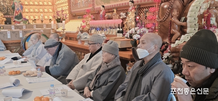 매서운 한파가 몰아친 가운데 개최한 이날 정기총회는 삼귀의례 예식과 불국사 법경 스님의 반야심경, 그리고 약수선원 혜전 스님의 발원문 낭독으로 문을 열었다. 또 관음사 보경 법사의 연말 결산 보고와 불교 입문 68년째인 약천사 지일 스님의 고문 위촉식이 이어졌다.