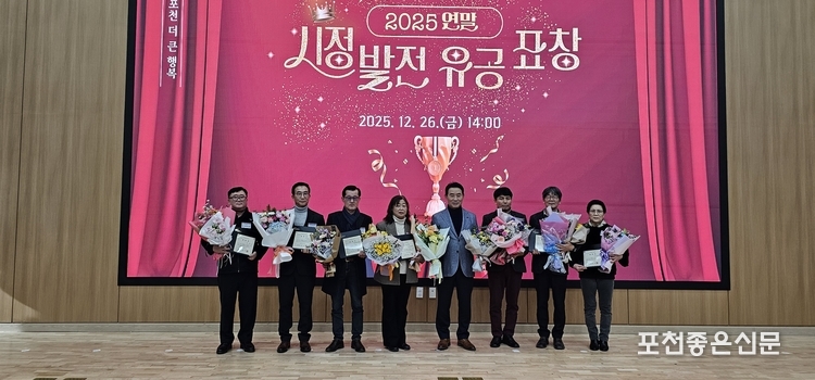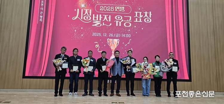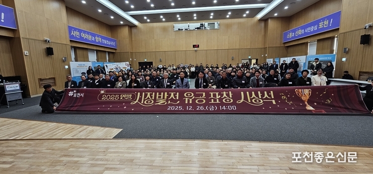 포천시는 지난 12월 26일 신청사 2층 대회의실에서 2025년 연말을 맞아 한 해 동안 시정 발전을 위해 헌신 봉사한 유공자에게 감사의 마음을 전하는 시상식을 개최했다.