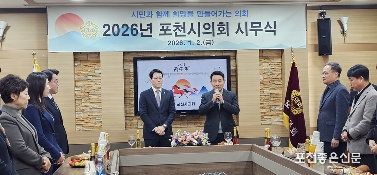 포천시의회는 지난 1월 2일 의회 2층 의원회의실에서 2026년 병오년(丙午年) 새해를 맞는 시무식을 개최하고 본격적인 의정활동에 돌입했다.