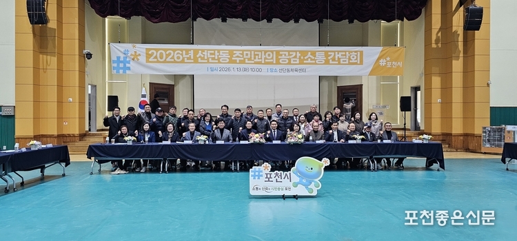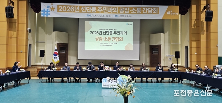 간담회는 포천시 시정 운영 방향 안내를 시작으로 선단동의 2025년 주요 성과와 2026년 주요 사업 추진계획 설명, 최근 4년간 공감·소통 간담회를 통해 제기된 건의사항에 대한 추진 현황 보고, 선단동 역점 사업 안내, 주민 건의사항 청취와 간부 공무원의 답변 순으로 진행됐다.