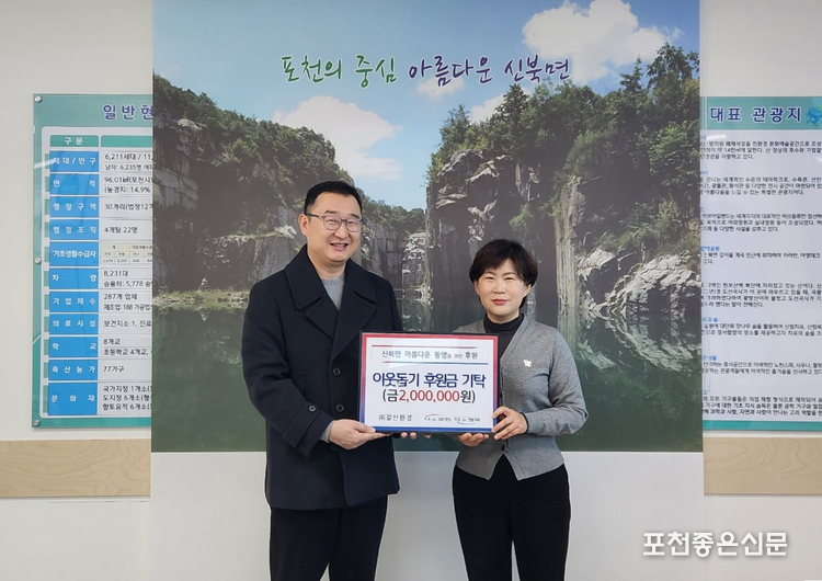 신미숙 신북면장은 “어려운 시기에도 지역사회를 위해 따뜻한 나눔을 실천해 주신 ㈜갈산환경에 깊이 감사드린다”며 “기탁된 후원금은 명절을 앞두고 도움이 절실한 이웃들에게 투명하고 소중하게 전달하겠다”고 전했다.
