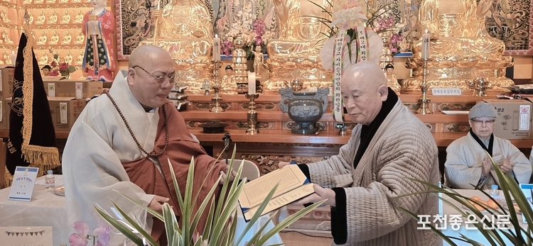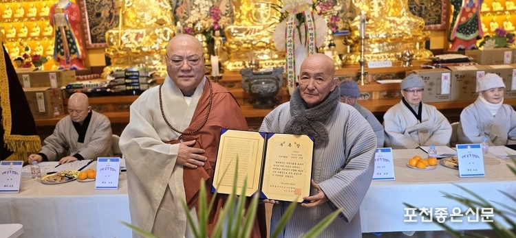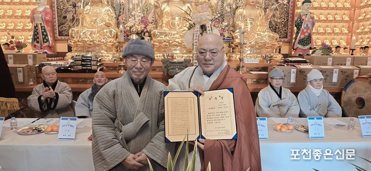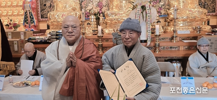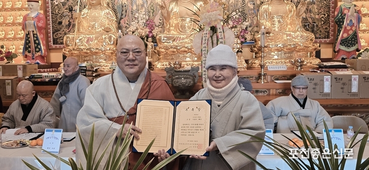 천궁사 주지 진영산 스님이 1월 27일 내촌면 천궁사 대법당에서 개최한 대한불교자비승가연합회 병오년 시무식 및 정기총회에서 제2대 회장에 취임했다.