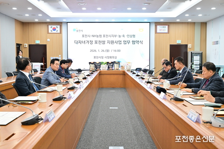 이날 협약식에는 포천시장을 비롯해 엔에이치농협 포천시지부장과 지역 농·축·인삼협 조합장들이 참석해, 다자녀가정의 경제적 부담 완화와 지역 농업의 지속 가능한 상생을 위한 협력 의지를 공유했다.